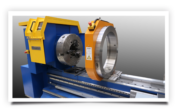 4-Bahnen Spitzendrehmaschine für die Bearbeitung von Drehteilen bis Drehdurchmesser 650 mm, Spitzenweite 9 m.